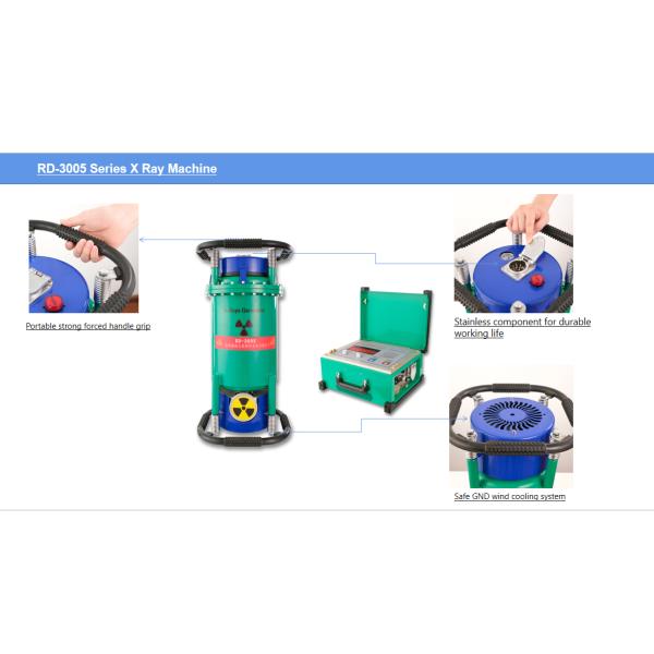 The RD-3005 is a compact, lightweight, and portable industrial X-ray flaw detector featuring strong penetration, time-saving, labor-saving, and highly stable performance, along with a low failure rate. It can operate continuously for 15 minutes without a 1:1 rest period. It is suitable for single-image radiography of double-walled chemical spherical tanks and large-diameter pipelines, improving work efficiency by 50%. The device is lightweight, with a generator weight of only 34 kg and a sophisticated design. This series of devices is available in directional and circumferential formats, with a maximum penetration of 50 mm thick Q235 steel.